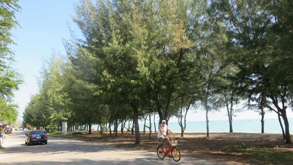Km 125 – Cha Am . Vì Hua Hin đông du khách quá và đắt đỏ quá nên mới phát sinh thêm thị trấn Cha Am , phía bắc Hua Hin 25km . Cuối tuần rất đông du khách nội địa đến đây cùng gia đình , bạn bè . Cả thị trấn như hòa vào một ” lễ hội Picknick hải sản ” bên bãi biển , dưới những hàng cây phi lao rợp bóng mát ! Nếu đến đây trong tuần , chắc chắn khách sẽ được biết được như thế nào là cảm nhận của . . . ” Một mình trên biển vắng ” hoặc . . . ” Tôi với Trời bơ vơ ” !